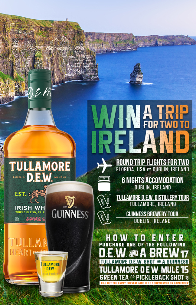 It’s a mighty fine time to visit Bo's Beach because we are offering guests a chance to win a trip for two to Ireland! As part of its St. Patrick’s Day celebrations, we are holding our annual Irish D.E.W. and a Brew feature from March 1 – March 31, 2026, which gives guests the opportunity to win a week-long trip to Ireland! All guests need to do is purchase a D.E.W. and a Brew (Tullamore D.E.W. Irish Whiskey and a Guinness), a Tullamore D.E.W. Mule, Green Tea Shot or Pickleback Shot. Then, fill out an entry form and give it to their server or the bartender. Do you have the luck of the Irish on your side?